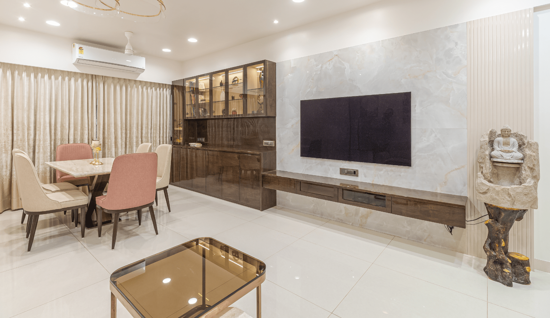 The client is a renowned designer and owns a contemporary, classy clothing brand. For his multi designer store, he emphasized the Indian culture and its roots. He strongly believes in Vaastu Shastra concepts and wanted us to follow the same. With his clear brief on what exactly he was expecting, our team kicked off the project. We researched a lot of local, typical Indian brands as well as artisans to comprehend the best of the latest trends and all design possibilities. Choice of laminates took a lot of our time and research. Batic and Patolia inspired printed laminates were chosen for Saurabh Store.